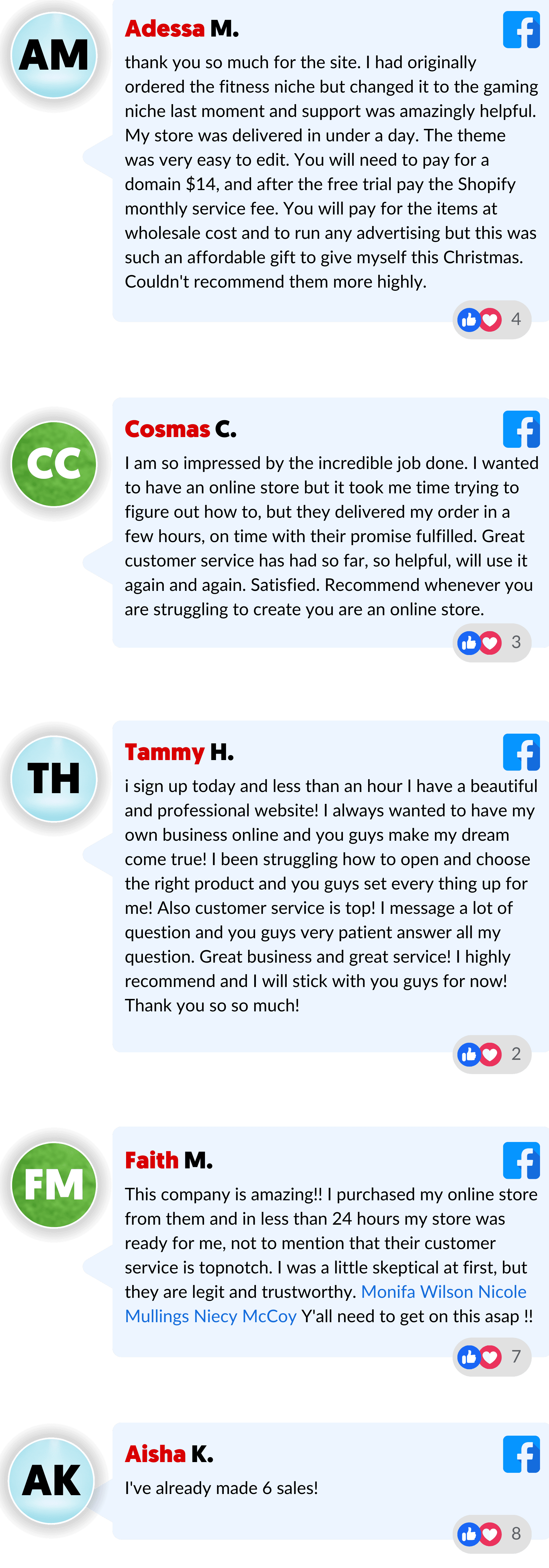 By Purchasing our stores you are acknowledging that you are receiving a prebuilt store(s). These are stores that were built prior to purchase which means multiple customers could receive the same design. These are stepping stones for a store design and should NOT be considered a "business" you are simply purchasing a design of your store on the Shopify platform. You can build your own store for free at Shopify.com Please do not consider this a "Make money" opportunity, we're simply designing a store for you.